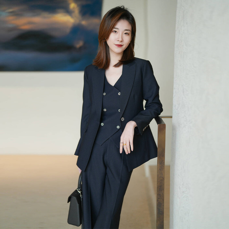 春秋新款明星同款藏青色西装外套职业正装马甲直筒裤三件套套装女