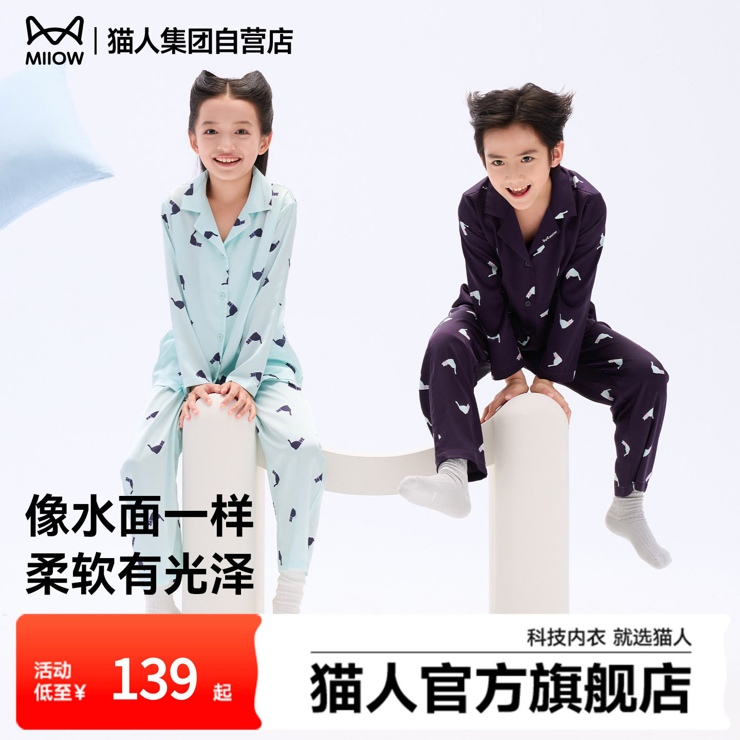 【明星同款】猫人新款儿童家居服套装秋男女童长袖长裤睡衣可外穿