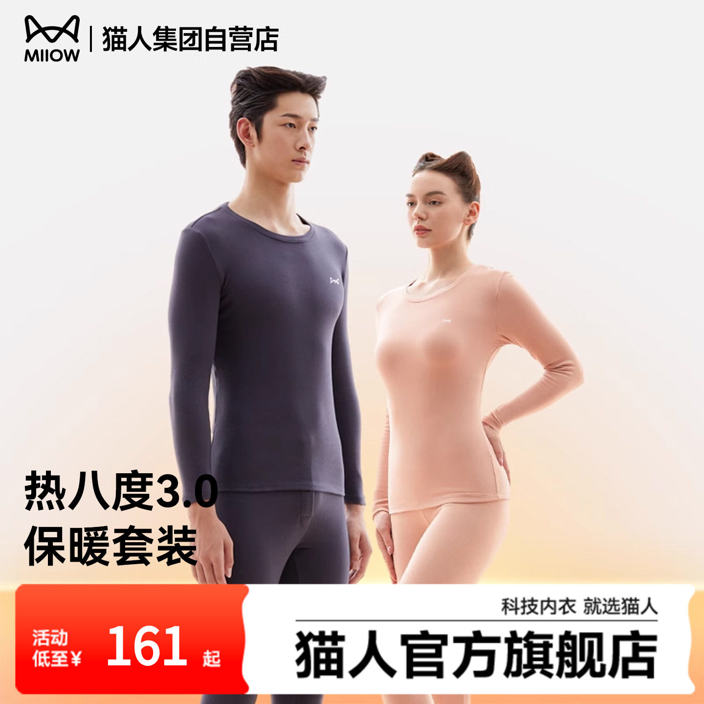 【明星同款】猫人热八度3.0保暖内衣套装秋衣秋裤男女款加绒加厚