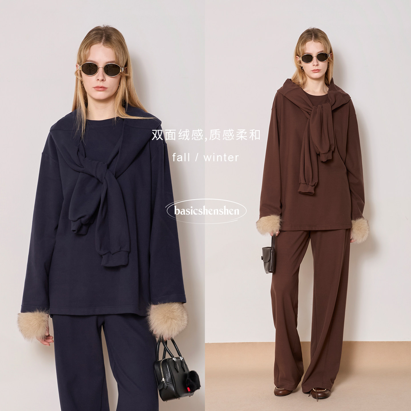 【明星同款】basicshenshen连帽系结T恤长裤气质休闲套装女秋冬