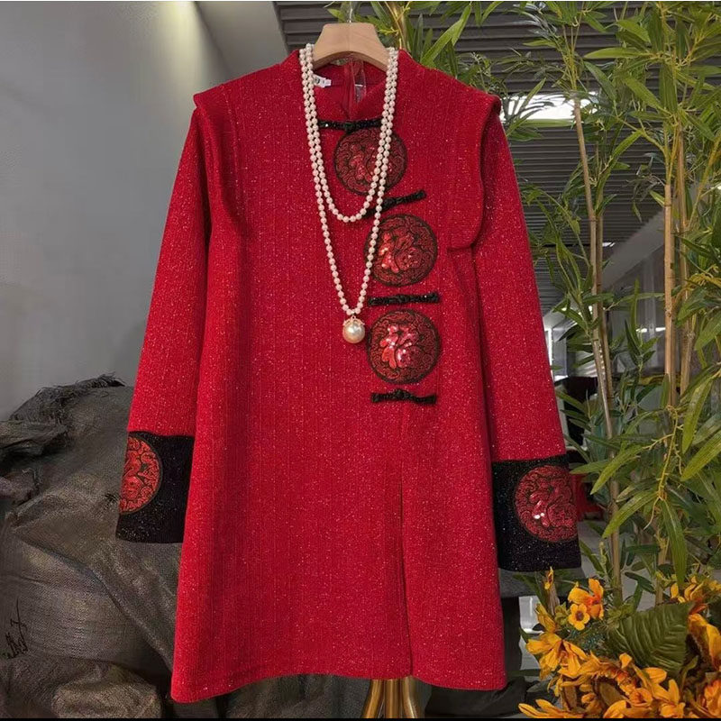 - 毛呢连衣裙长袖a字裙