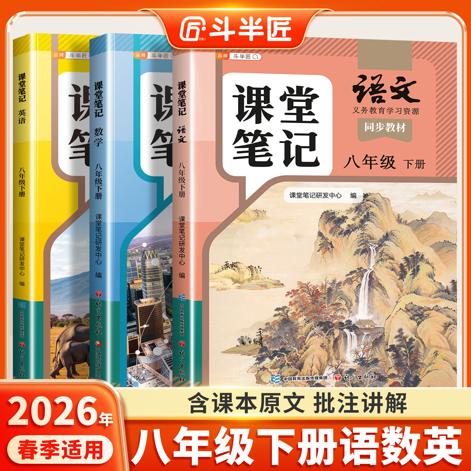 2026版课堂笔记八年级下册英语人教版外研译林语文数学初二上册教材书全套全解解读8上同步课本教材讲解预复习知识点汉知简