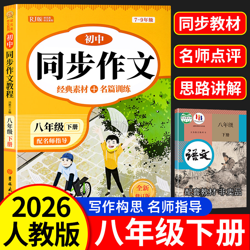 2026新版 八年级下册同步作文人教版 初中生初二8上下册语文教辅资料满分作文书大全初中优秀高分范文素材精选部编教材全解全套