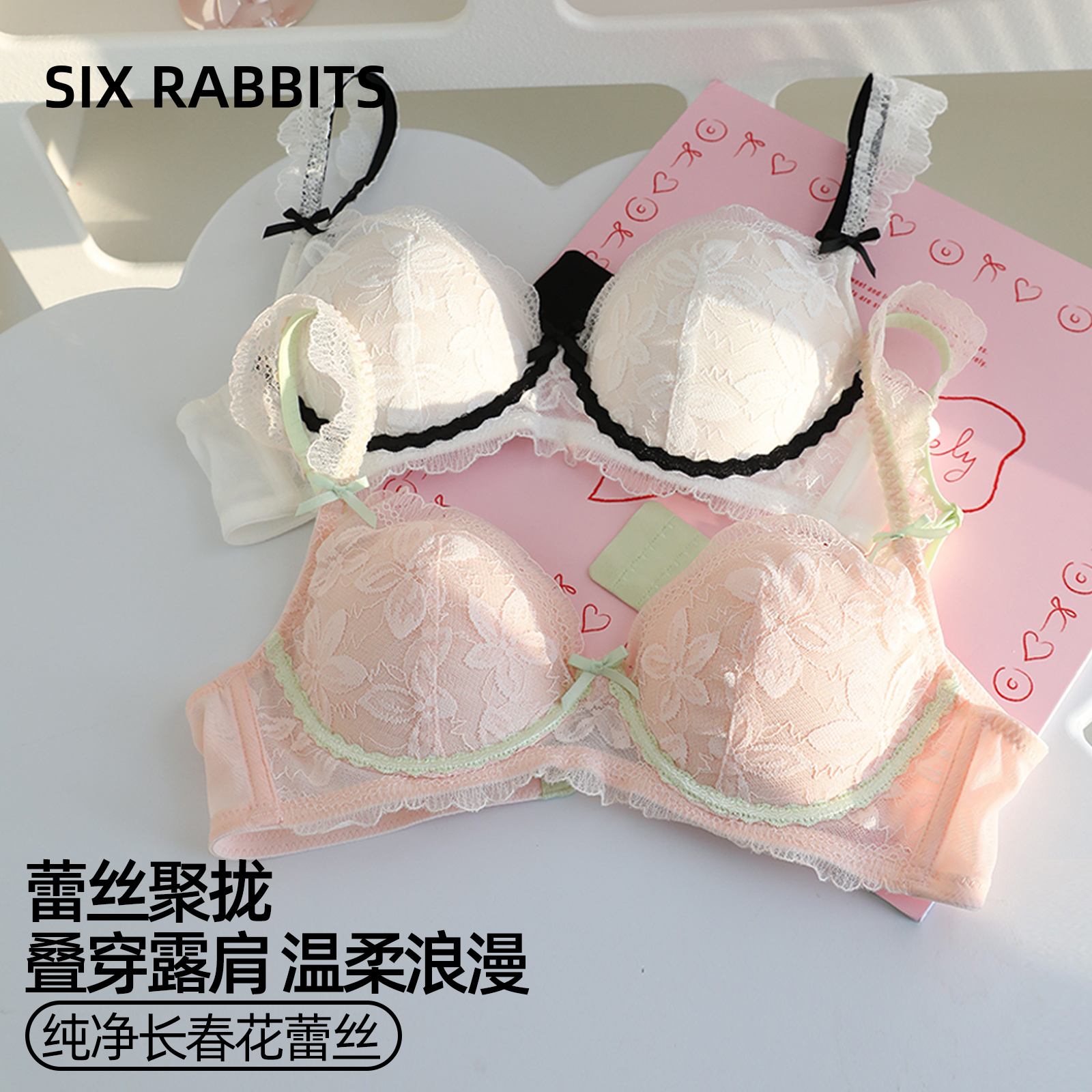 六只兔子内衣女小胸聚拢文胸深v性感蕾丝收副乳防下垂无钢圈胸罩