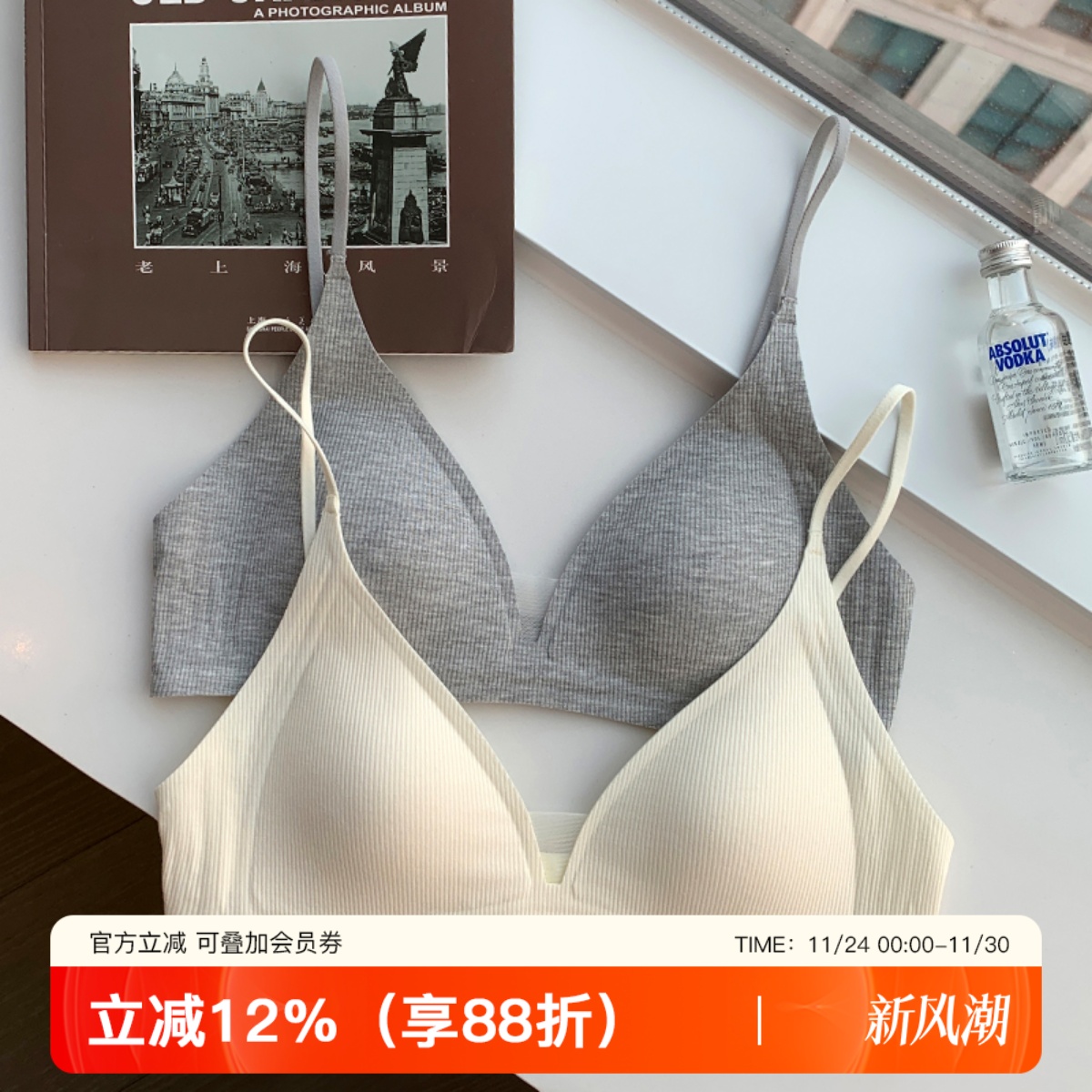 法式三角杯内衣女薄款小胸聚拢性感深V无钢圈舒适无痕细肩带文胸