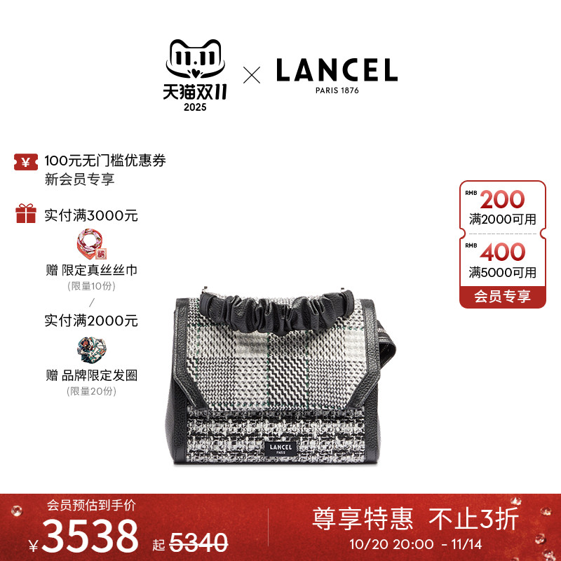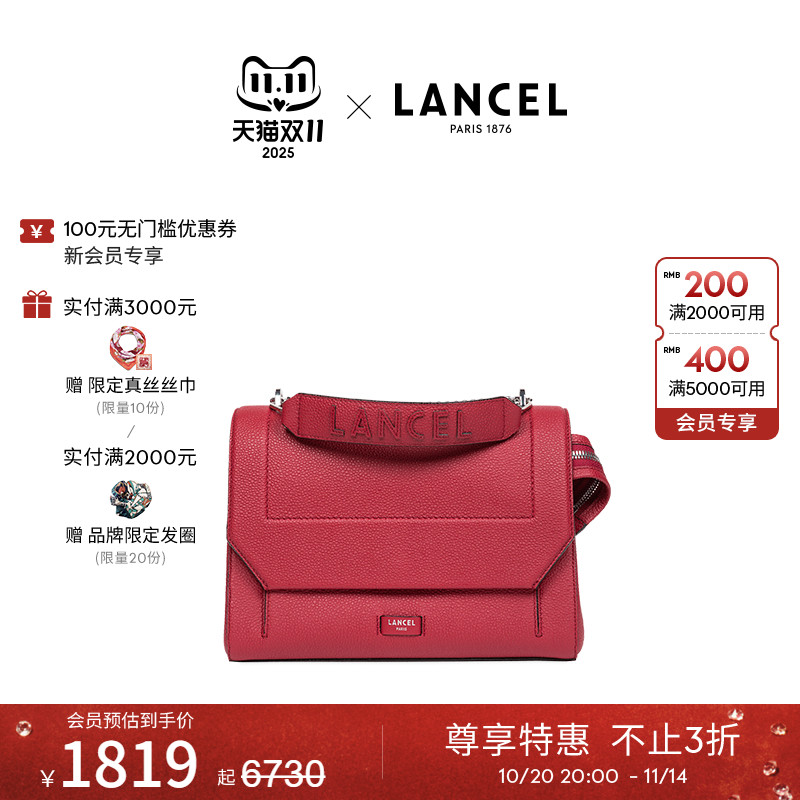 LANCEL/兰姿 Ninon系列经典链条包大号单肩斜挎包翻盖包 小方包