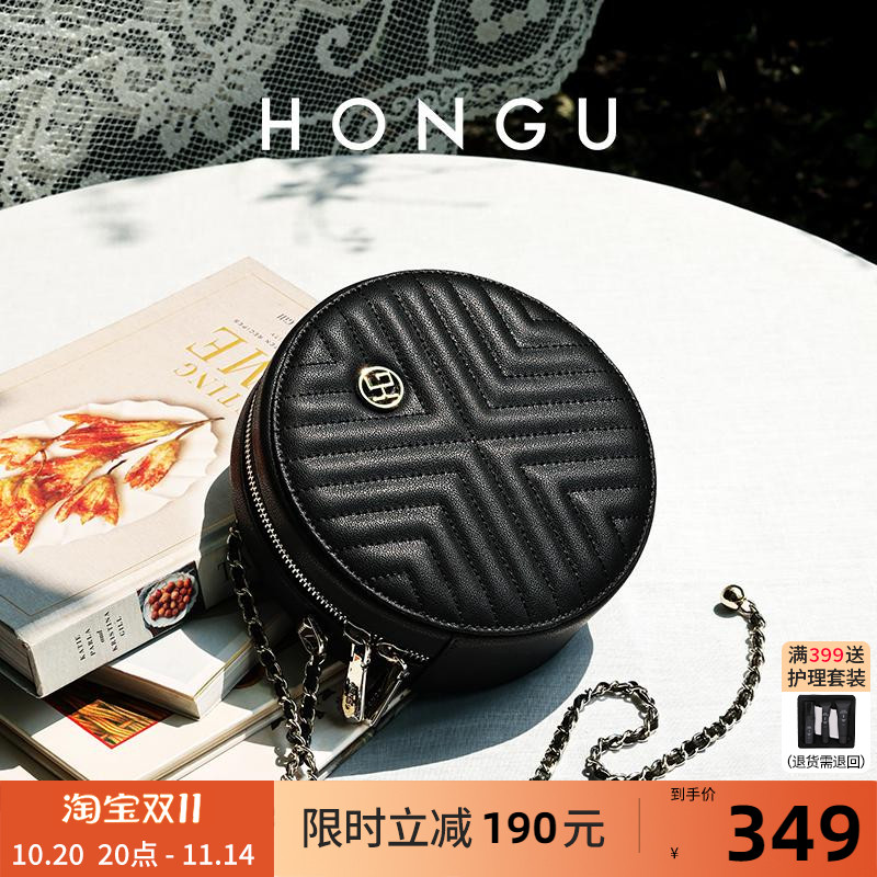 HONGU/红谷小圆包链条小猪包格纹圆盒包包女经典百搭休闲款小众包