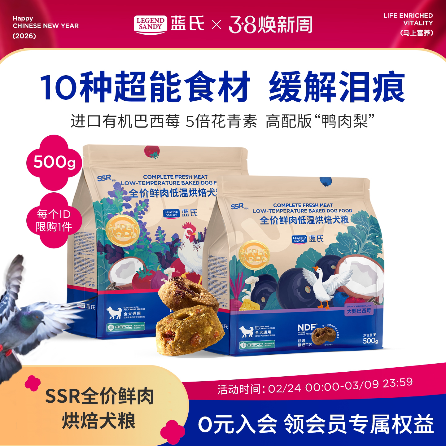 蓝氏狗粮SSR低温烘焙狗粮泰迪小型犬金毛边牧中大型犬成犬500g