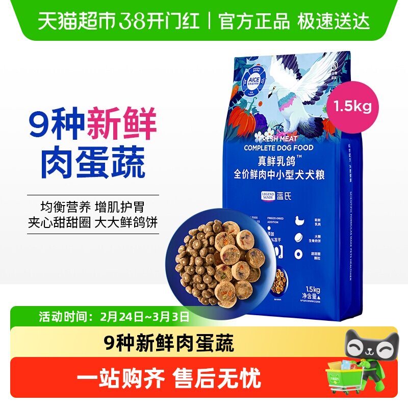 蓝氏真鲜乳鸽幼犬粮鲜肉狗粮幼犬专用奶糕粮小型犬中型犬边牧比熊