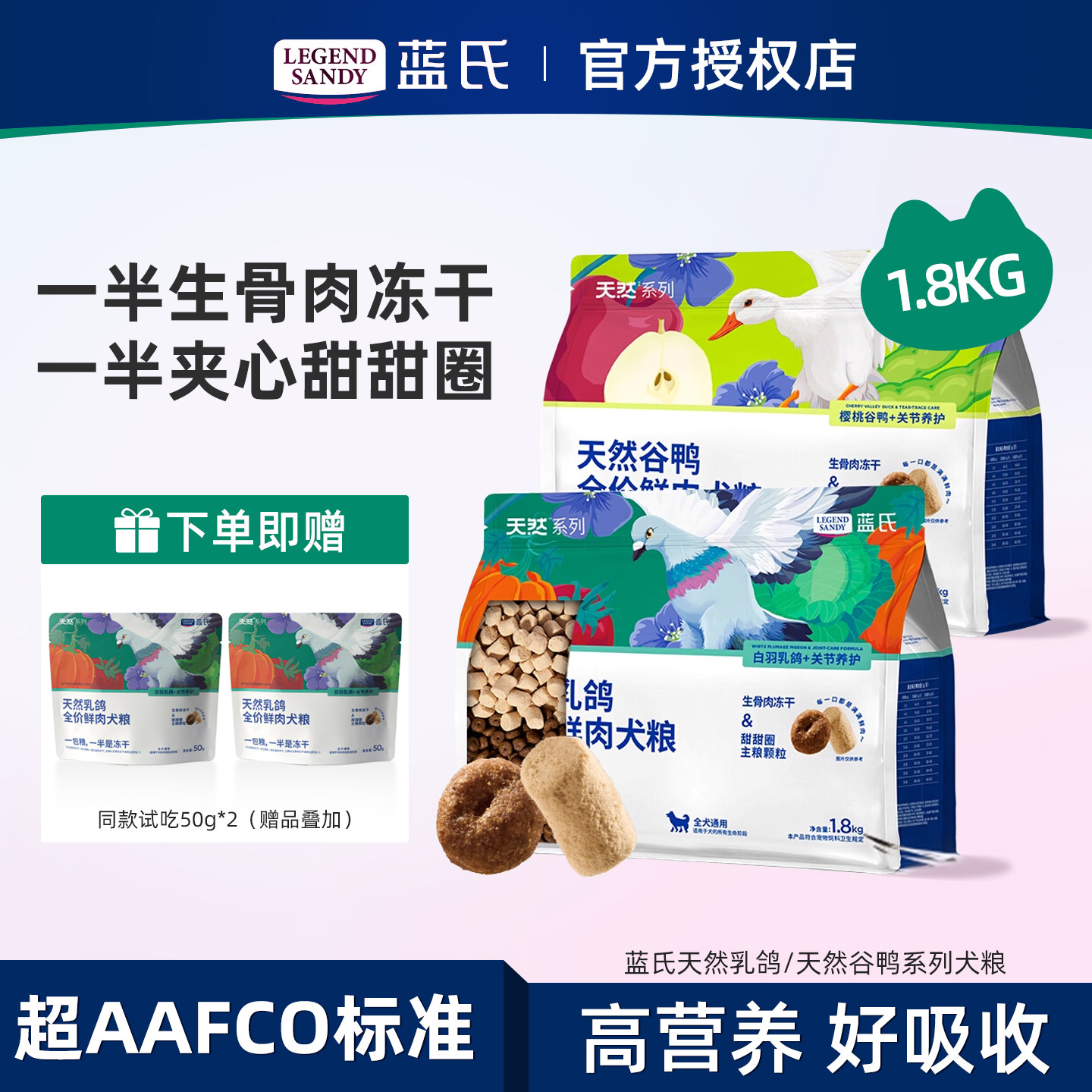 蓝氏真鲜乳鸽猎兔冻干狗粮中小型犬大型犬成犬奶糕幼犬粮全价试吃