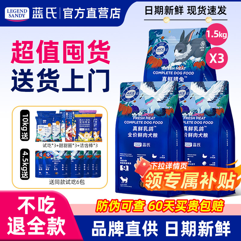 蓝氏狗粮真鲜乳鸽猎兔全价鲜肉犬粮小型犬中大型犬幼犬粮官方正品
