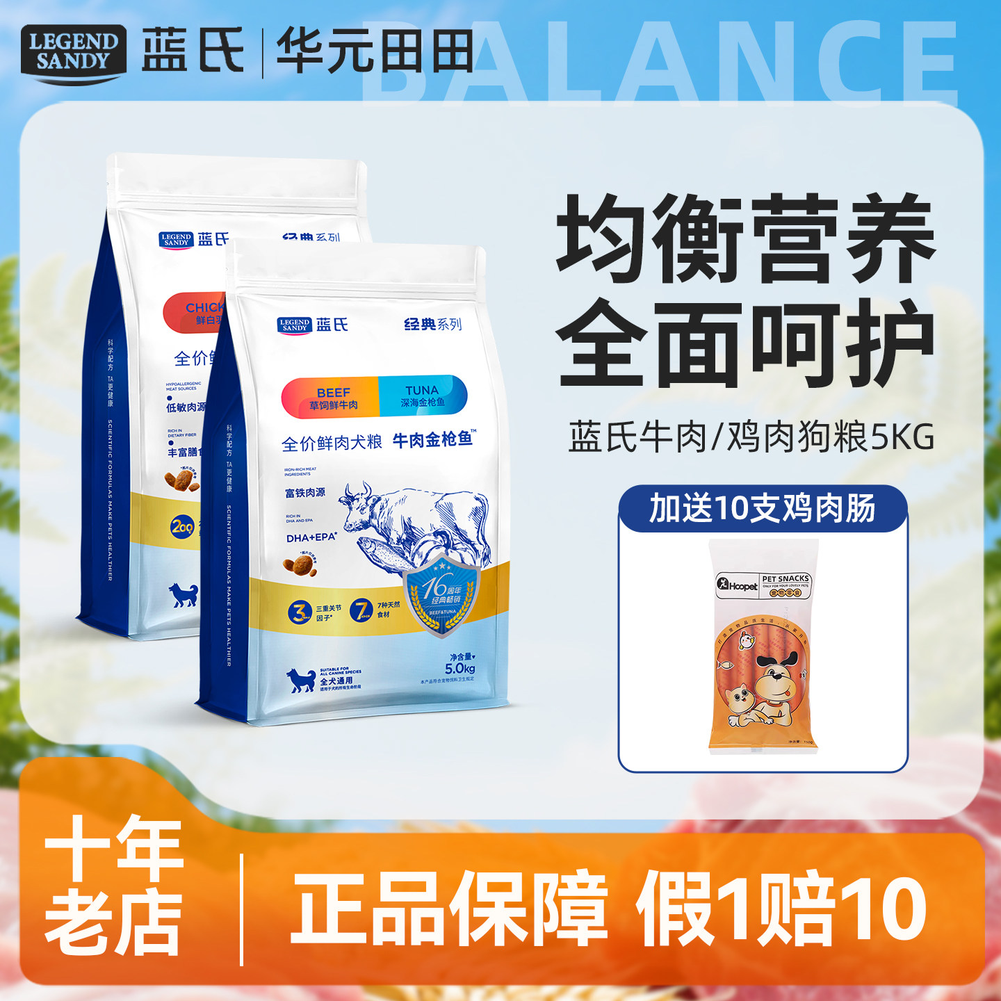 蓝氏狗粮5kg 牛肉金枪鱼通用型鸡肉燕麦成犬金毛萨摩耶阿拉斯加