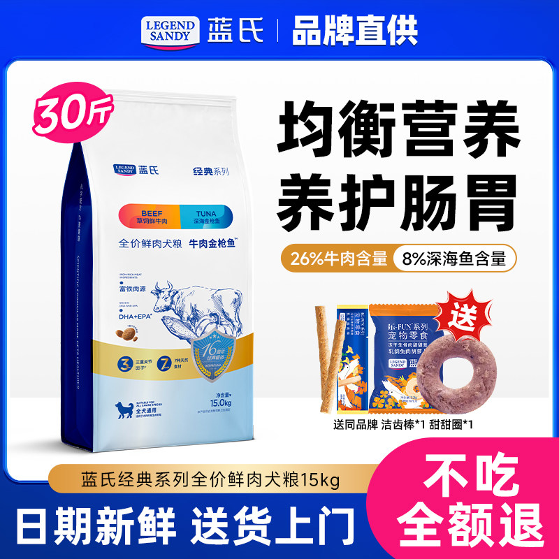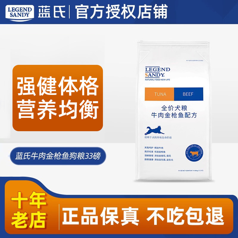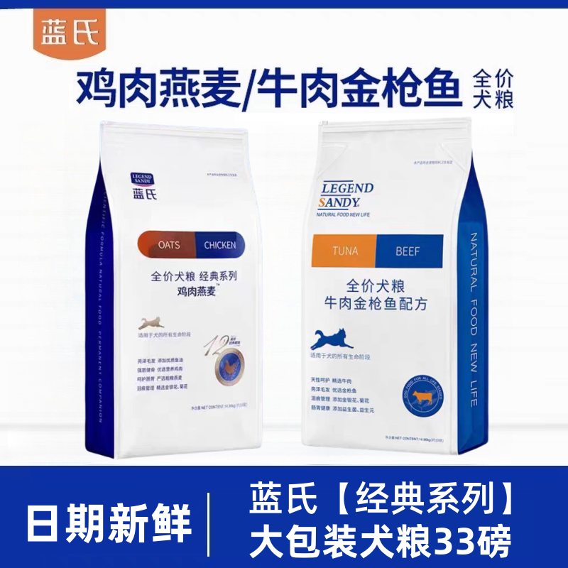 蓝氏狗粮33磅15kg30斤全期通用牛肉金枪鱼鸡肉燕麦全价犬粮9磅4kg