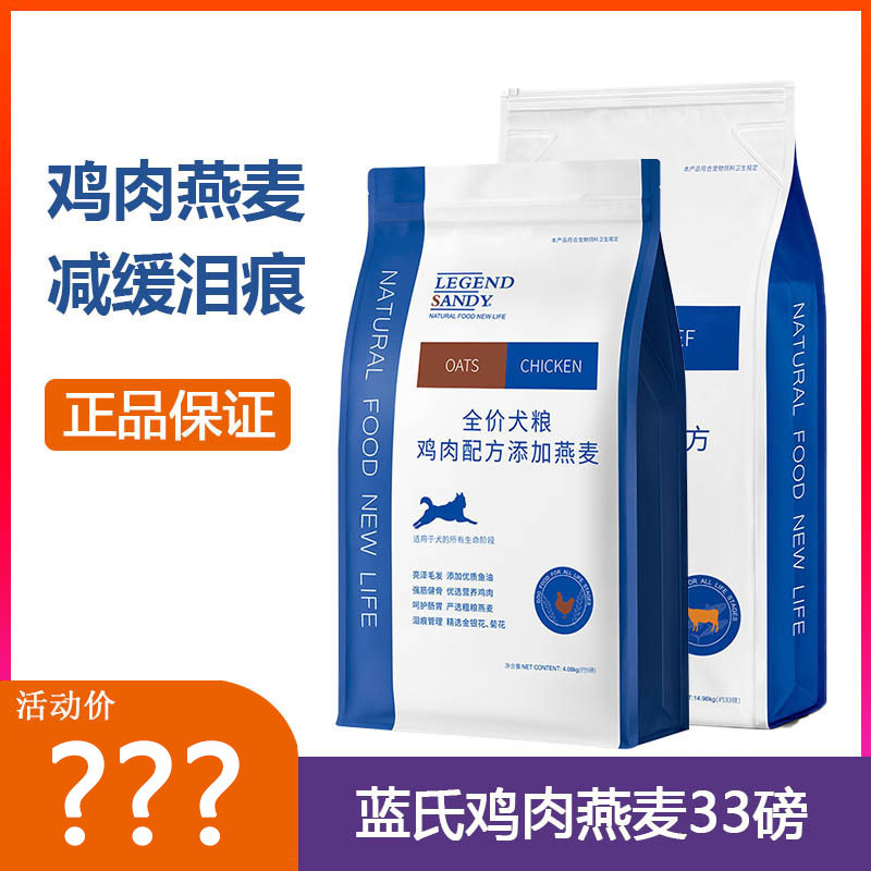 蓝氏狗粮鸡肉燕麦成犬幼犬粮33磅泰迪金毛哈士奇增肥去泪痕天然粮