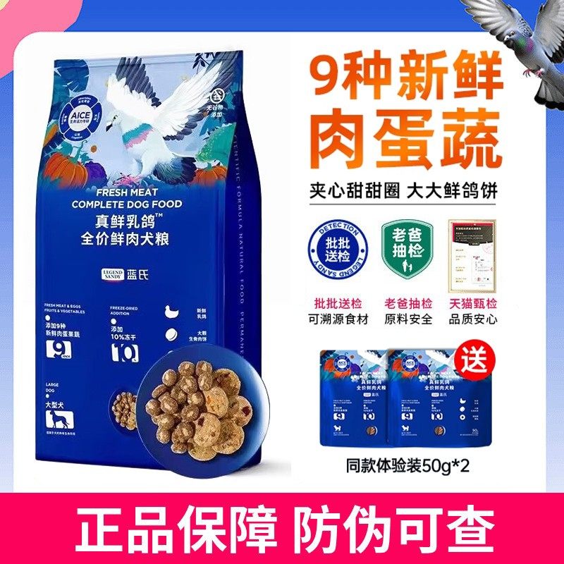 蓝氏狗粮真鲜乳鸽犬粮全价冻干大型犬5kg中小型成犬粮1.5kg通用型