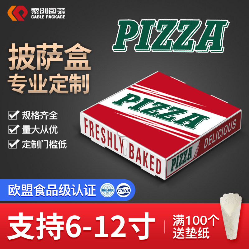 披萨打包盒商用一次性pizza盒6寸7寸8寸9寸10寸12外卖包装盒定制
