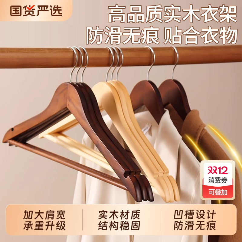 实木衣架家用挂衣无痕木质木头大衣挂衣柜衣服撑子酒店服装店批发