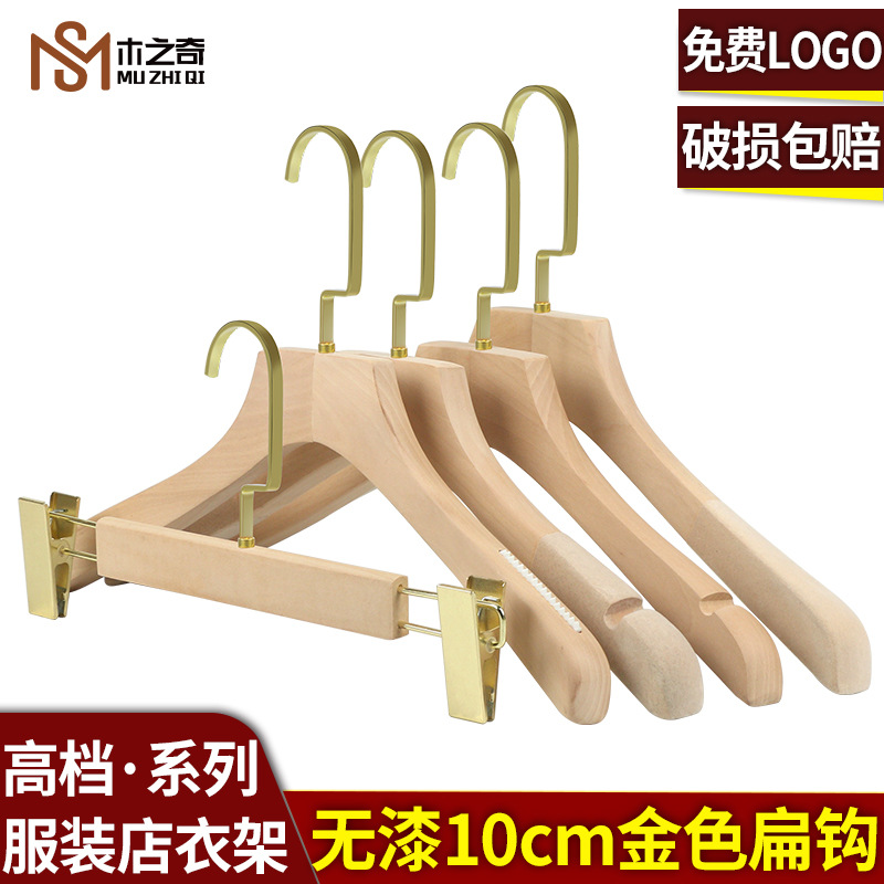 无漆原木本色长钩服装店植绒防滑实木质衣架批發挂撑定制LOGO包邮