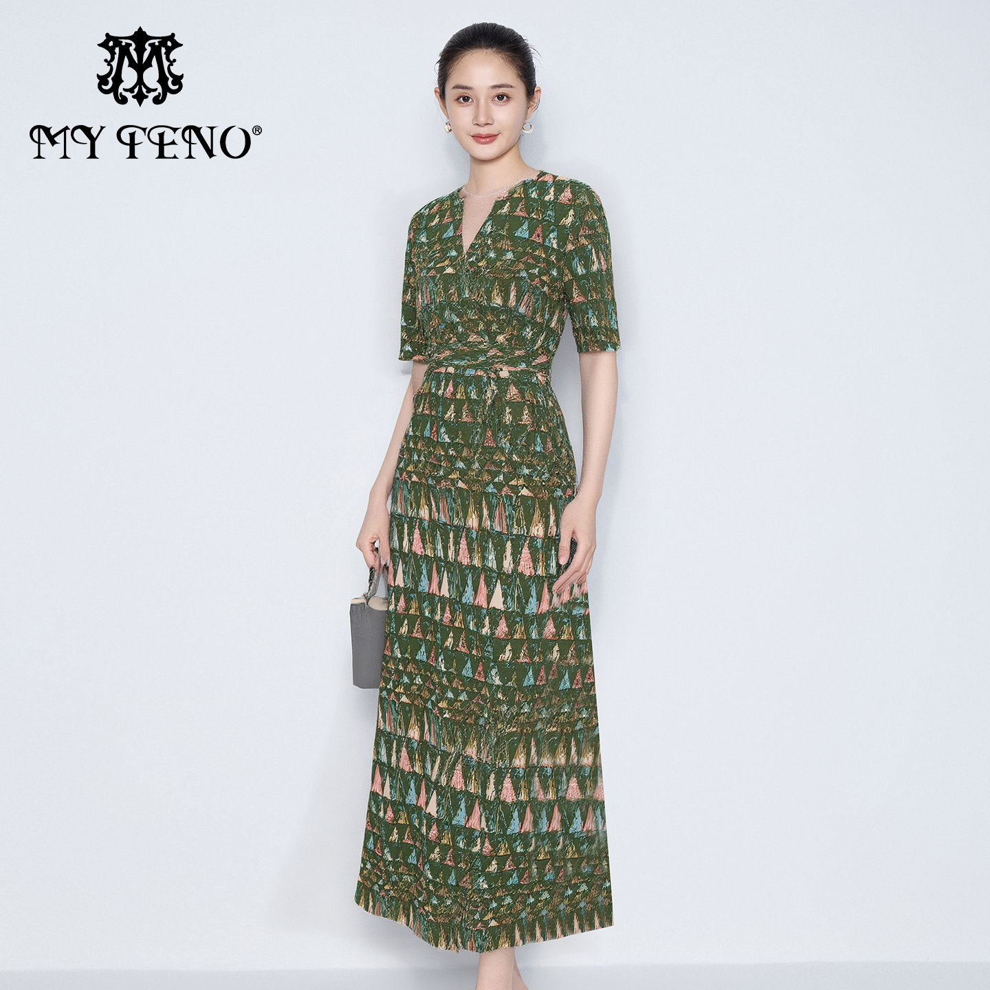- 真丝印花连衣裙长裙