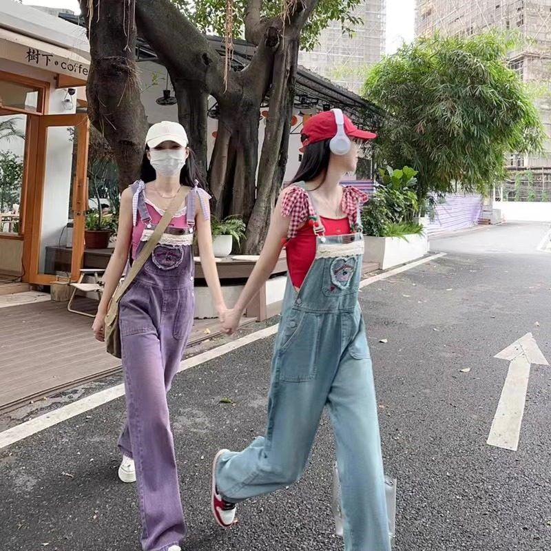 设计感春夏牛仔背带裤套装女学生可爱减龄韩版宽松直筒连体裤长裤