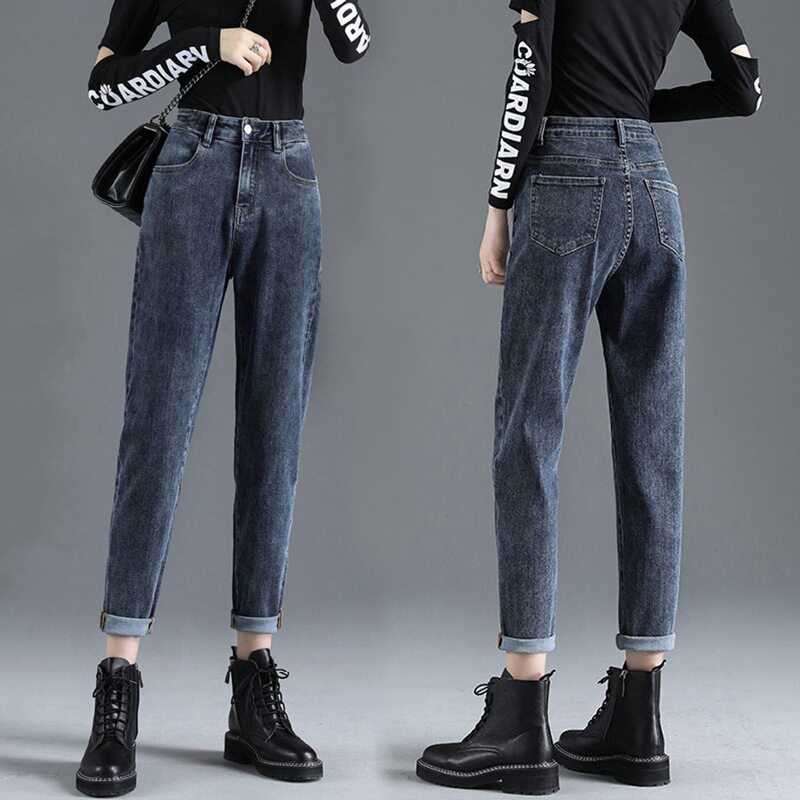 高腰牛仔裤女哈伦2025春秋新款韩版学生宽松显瘦直筒萝卜老爹裤潮