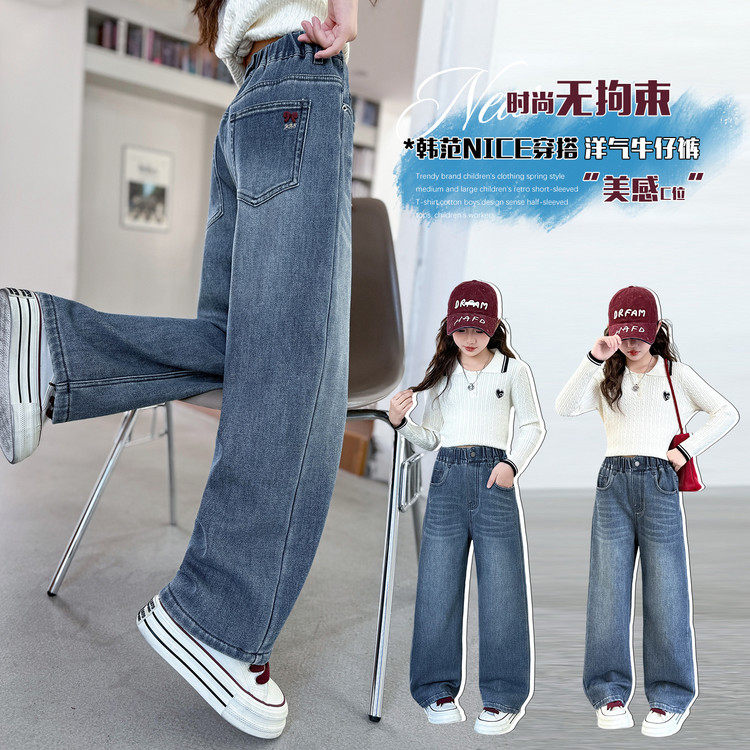 女童牛仔裤春秋季新款儿童阔腿裤学生女孩直筒裤春款韩版宽松裤子