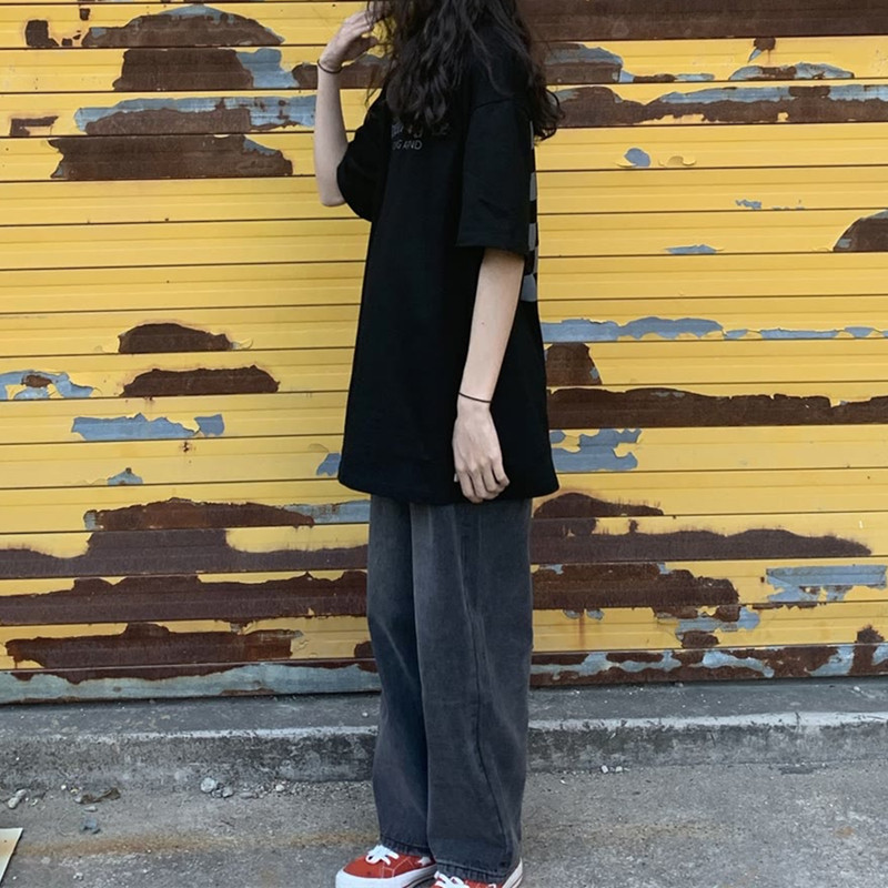 直筒牛仔裤女ins高腰显瘦韩版宽松chic百搭小个子学生老爹阔腿裤