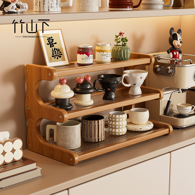 实木桌面杯架置物架桌上多层收纳家用台面放杯子咖啡杯茶杯茶具架