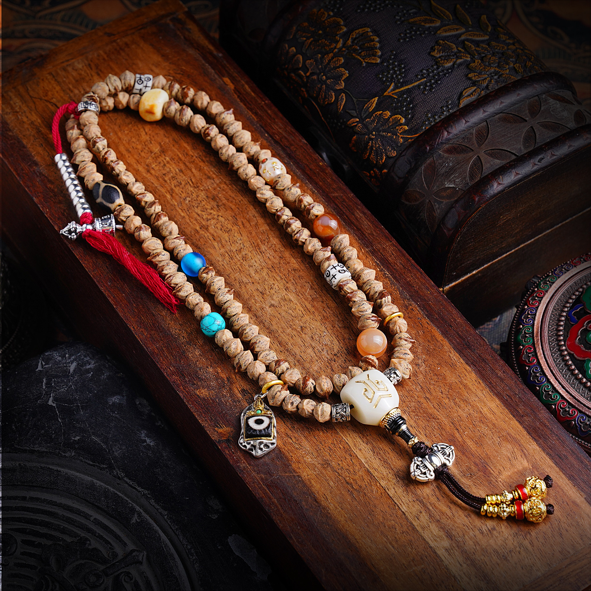 长腿顺纹深坑鬼脸黄油皮热振百香籽藏切108脖挂多圈手持文玩手串