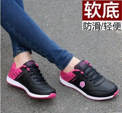 新款平底鞋女波鞋春秋皮面防防滑中老运闲动鞋女士软水底休鞋年妈