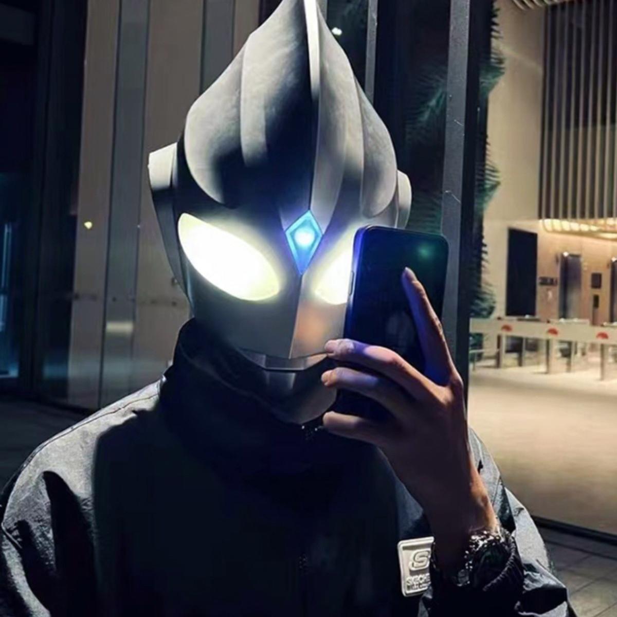 万圣节迪迦奥特超人儿童成人触摸发光面具头套曼全脸头盔男孩玩具