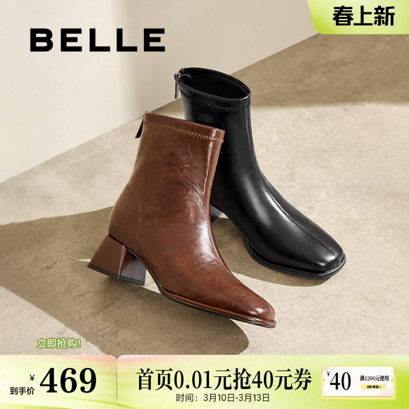 - 真皮女鞋粗跟短靴