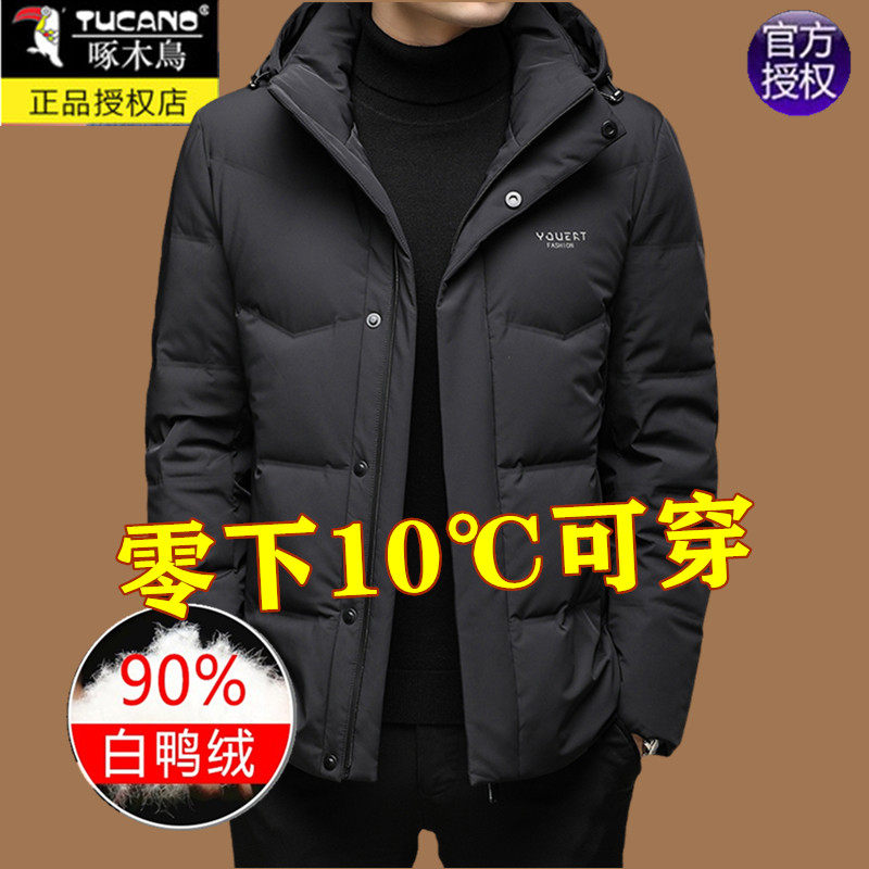 啄木鸟羽绒服男加厚2025新款中长款爸爸冬装男士品牌连帽保暖外套
