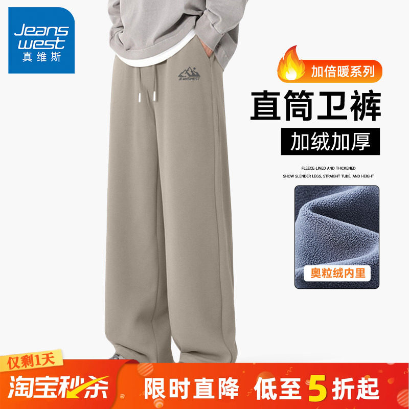 GV真维斯裤子冬装男款加绒加厚直筒休闲裤男士冬季宽松保暖卫裤A