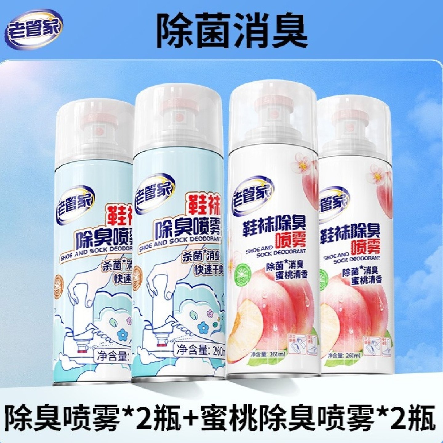老管家鞋子除臭喷雾鞋袜除臭剂球鞋杀菌鞋柜银离子防臭去异味神器