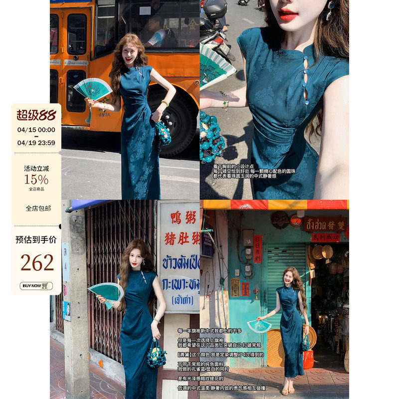 茉茉春夏 完全无袖有省半开襟中款复古南洋日常港式棉绸旗袍 雅宝