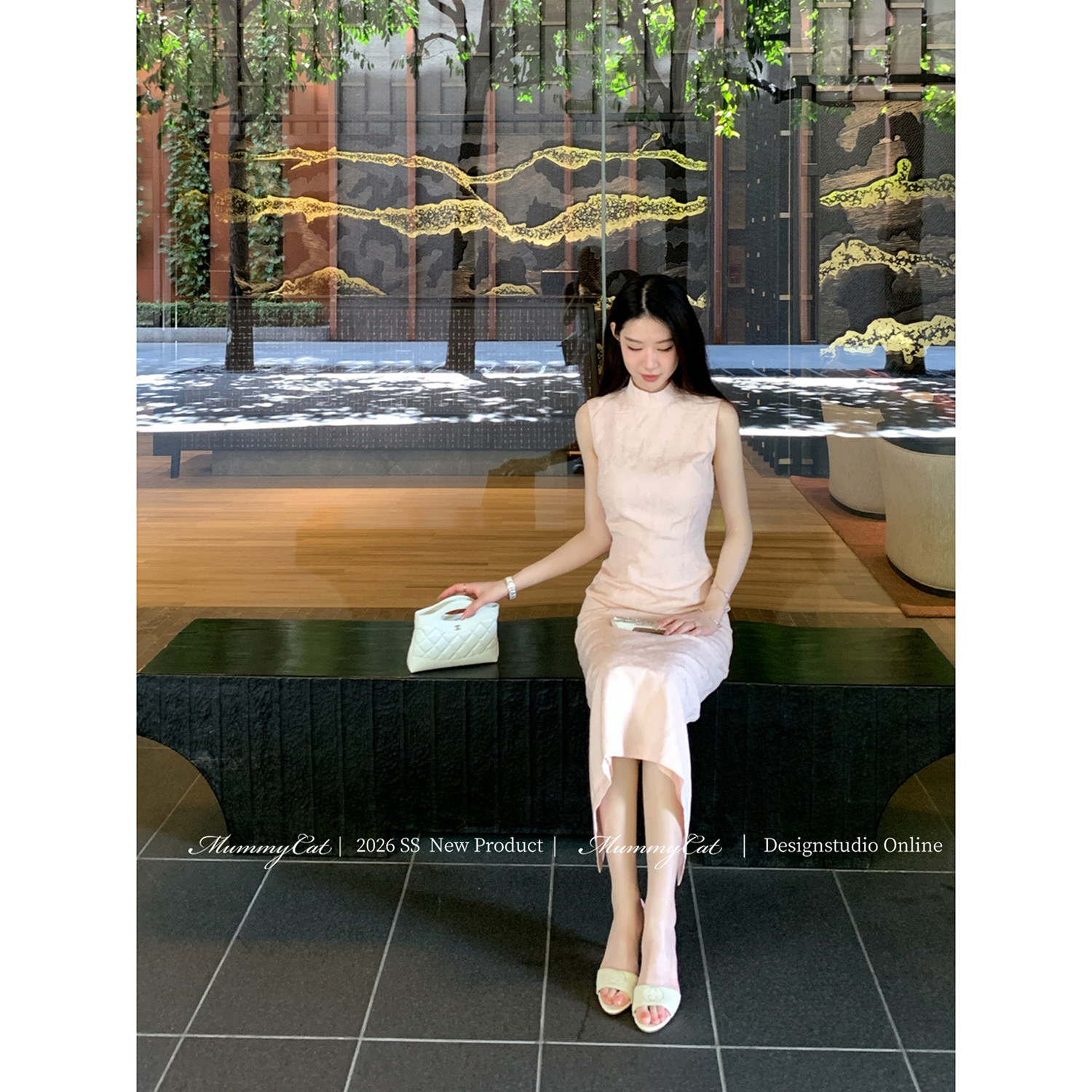 Mummy Cat下蛋喵【粉黛云舒】新品新中式改良旗袍亮丝提花连衣裙