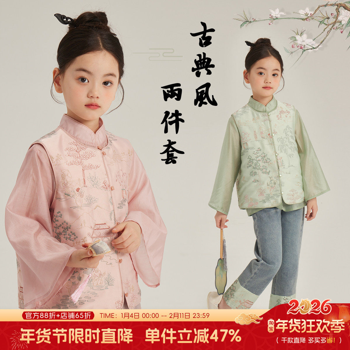 布丁哈鲁春装女童新中式汉服套装2026春秋新款儿童衬衫国风马甲