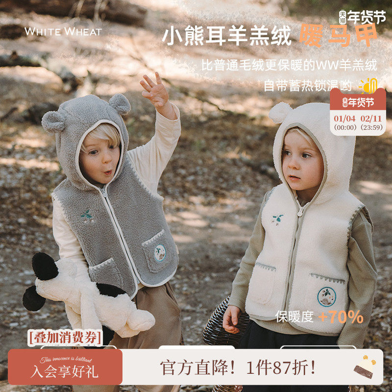 whitewheat儿童26春秋季新款马甲男女宝宝连帽羊羔绒蓄热无袖外套