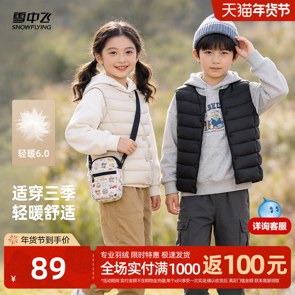 雪中飞2026春新款男女童装经典版型羽绒马甲背心百搭内搭外穿