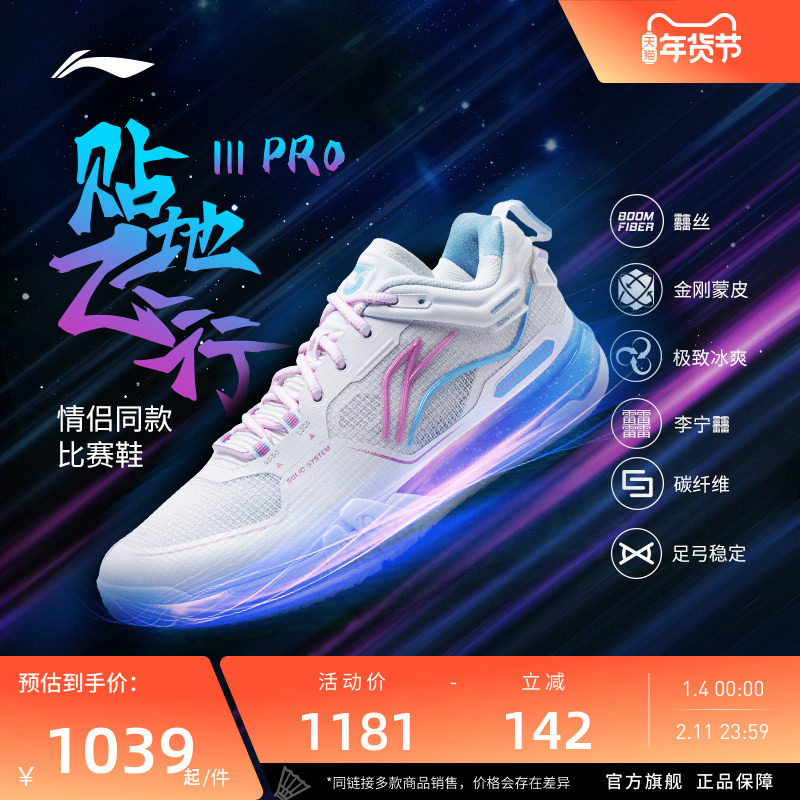 李宁羽毛球鞋 贴地飞行III PRO 男女同款减震回弹支撑专业比赛鞋