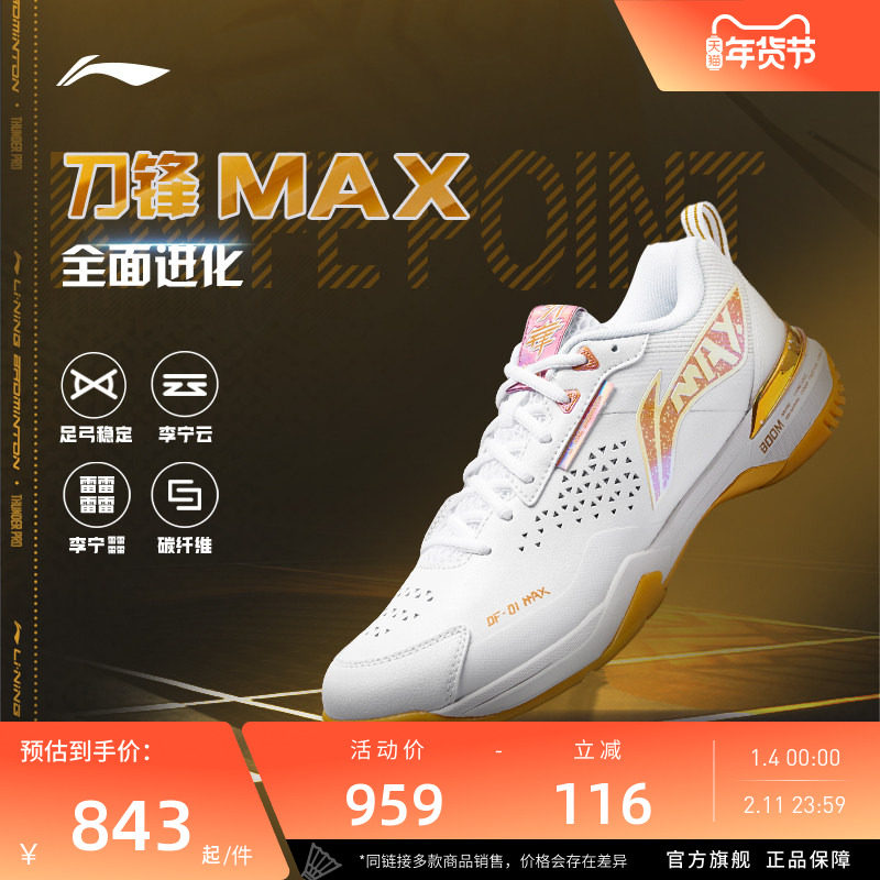 李宁羽毛球鞋 刀锋MAX 男女同款轻量高回弹减震透气专业比赛鞋