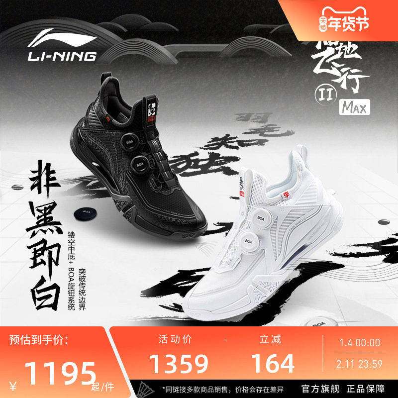 李宁羽毛球鞋 贴地飞行Ⅱ MAX 男女同款透气减震回弹专业比赛鞋
