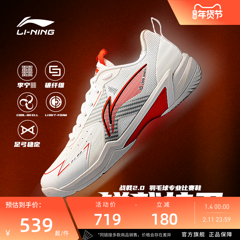 李宁羽毛球鞋 战戟2.0 男女款碳板减震高回弹透气耐磨专业比赛鞋