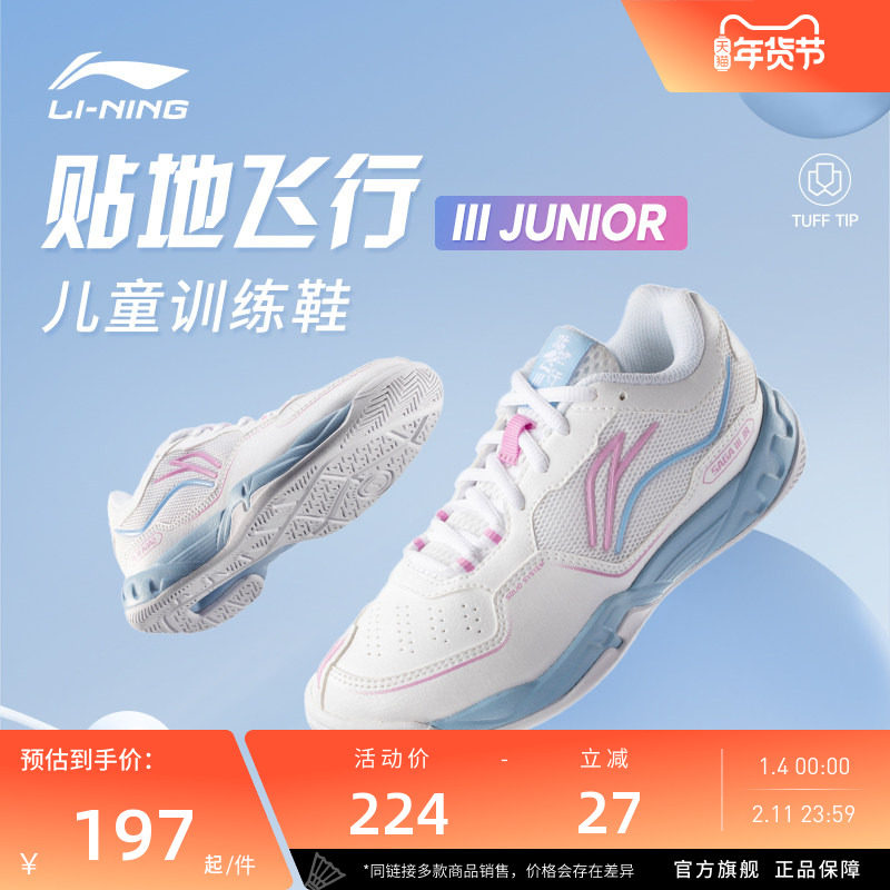 李宁羽毛球鞋 贴地飞行III JUNIOR 男女童儿童耐磨防滑训练鞋