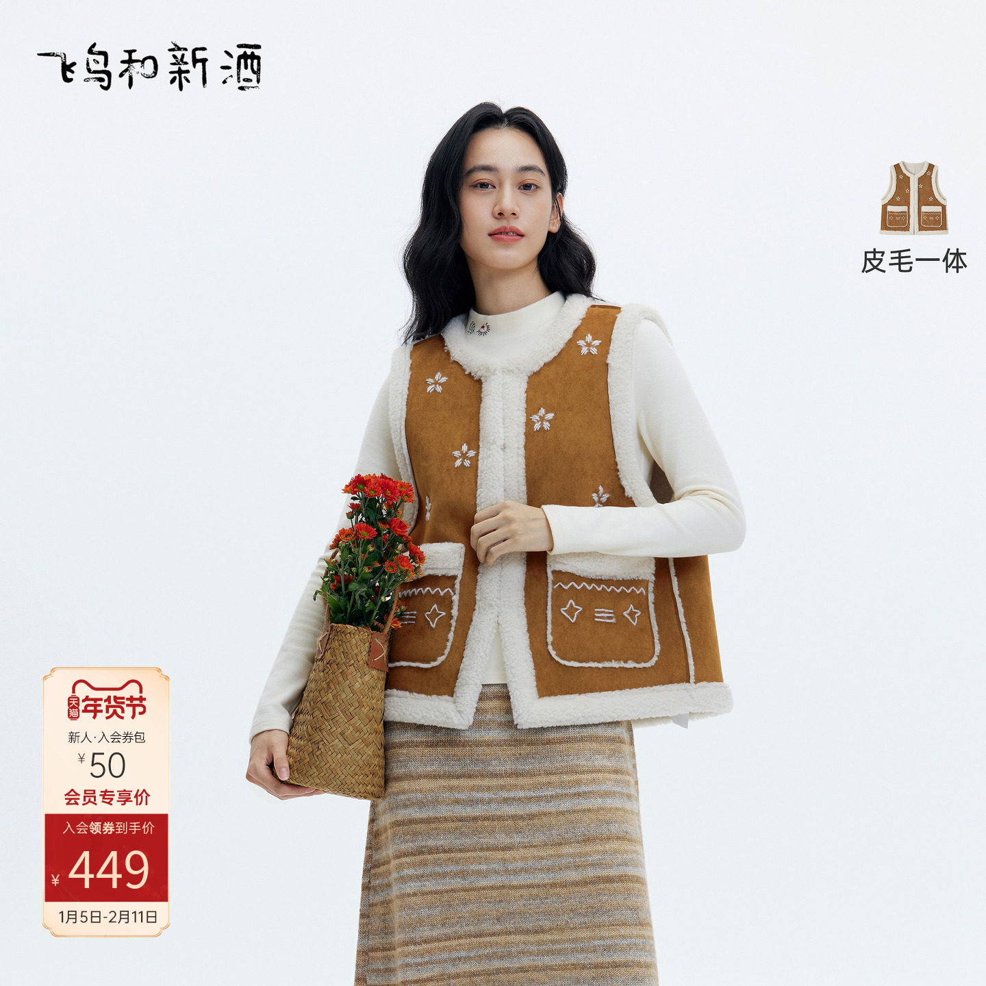 飞鸟和新酒刺绣保暖短款毛毛外套女2025冬季新款小个子马甲上衣