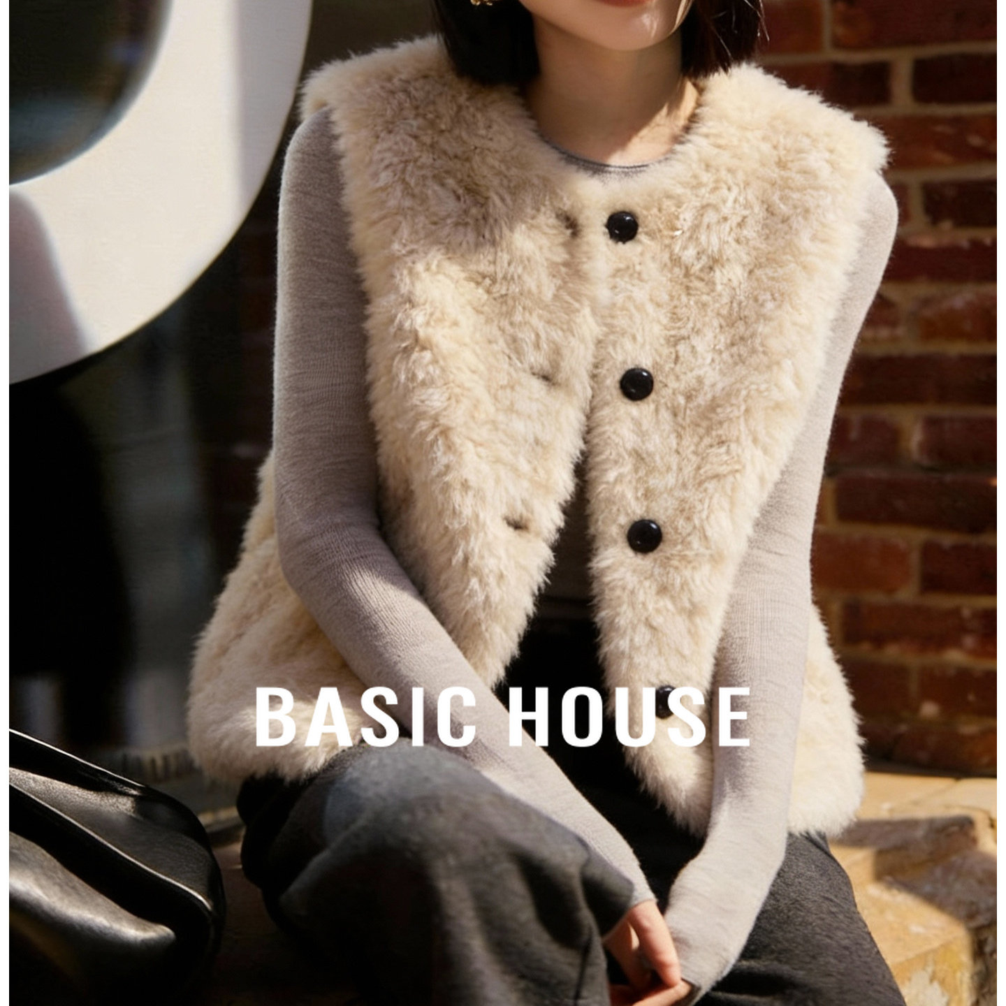 百家好仿皮草马甲女25冬季新款毛绒软糯毛毛马甲保暖短款无袖外套