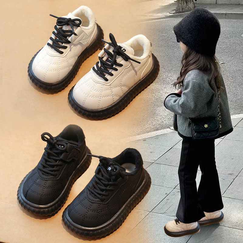 女童英伦风时尚棉鞋2025年冬季加绒保暖二棉鞋韩版百搭软底小白鞋