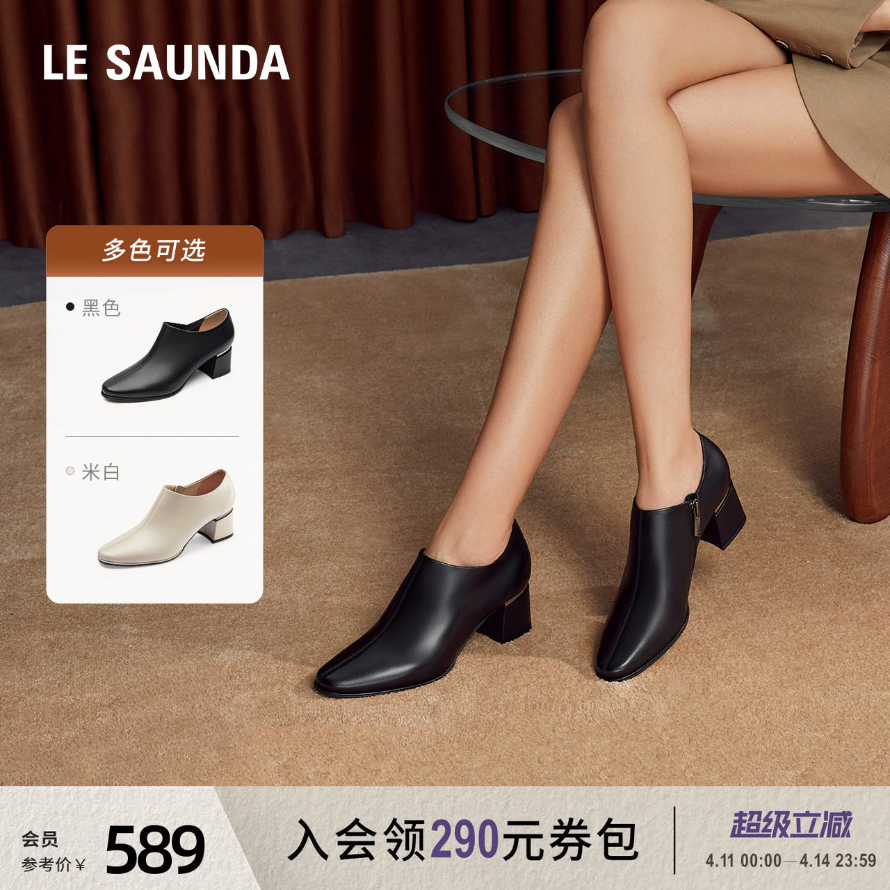 - 深口粗跟单鞋