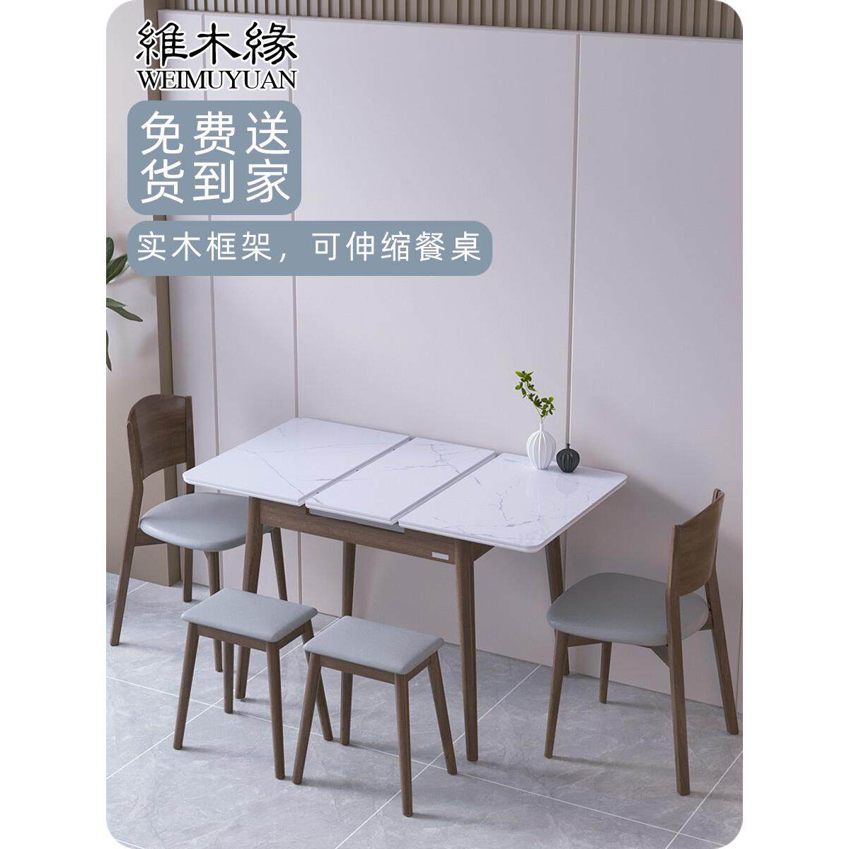 - 实木可伸缩餐桌椅组合